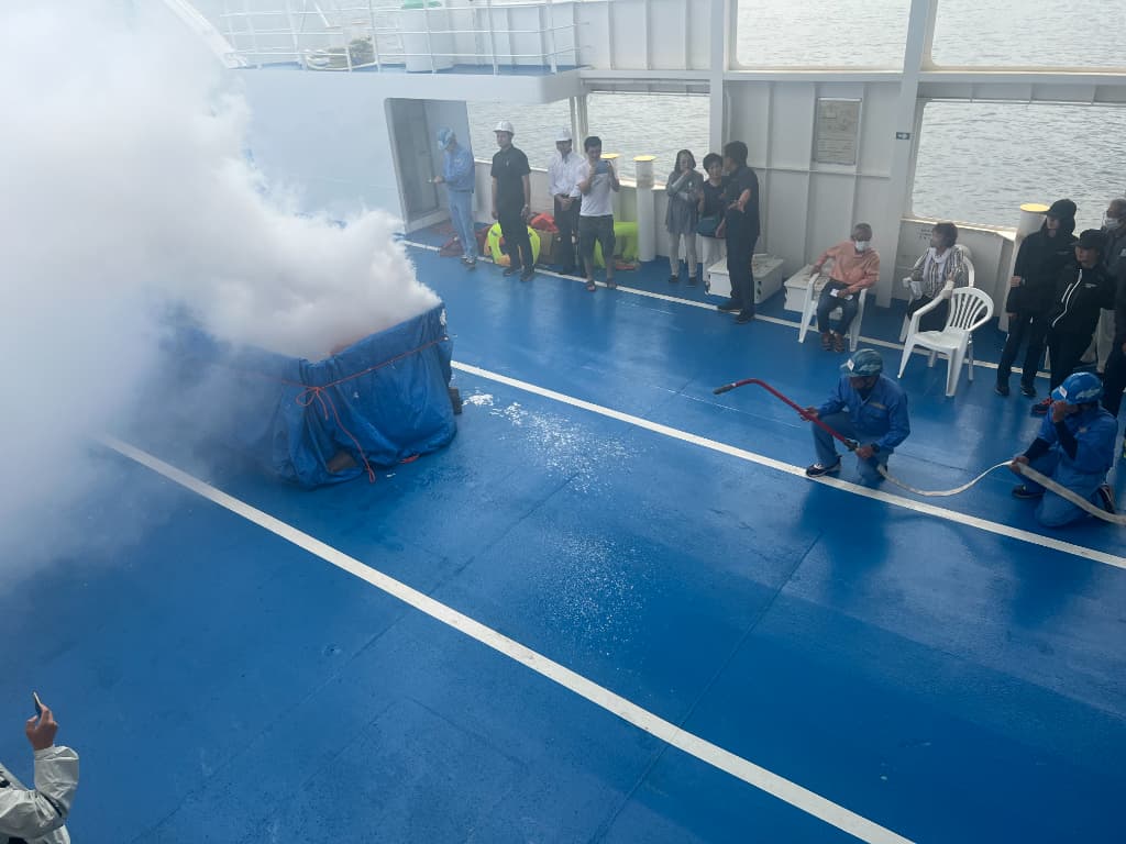 船内の消火器や消火用ホースで鎮火させました。