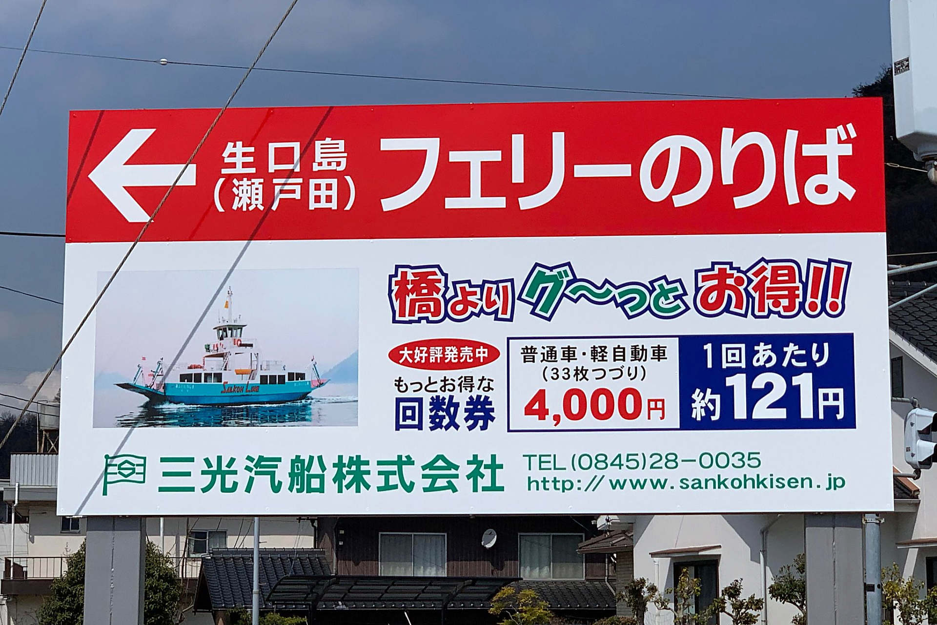 生口島(赤崎)行きフェリーのりば入口に大きな立て看板が立っております。
