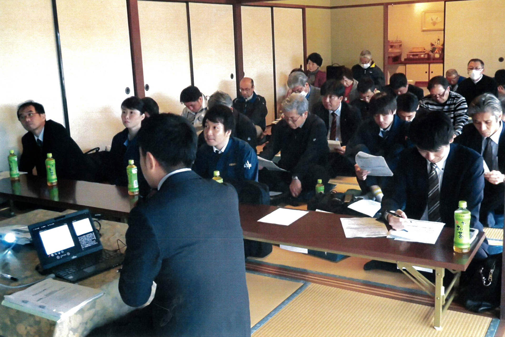年間を通した振り返りやこれからの活動目標を全体で再認識して、改めて自分たちで取り組める安全活動と取り組みは何かを考えます。これまでの研修会で培ってきたノウハウを共有していくことで、自分たちが持っている意識の擦り合わせを行っていきます。またセミナーが終了した際に、地域住民の方々も招いて、出雲市から獅子舞いを呼び、1年間無事で健康に過ごせるよう全員で厄払いを行います。社員だけでは終わらず、地域の方々と一心同体となって交流を行っていくことも三光汽船は大事にしています。